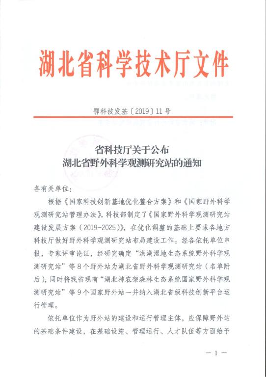 近日,湖北省科技廳公布了《省科技廳關于公布湖北省野外科學觀測研究站的通知》(鄂科技發(fā)基[2019]11號),由我校聯(lián)合湖北工業(yè)大學大學、中國長江三峽集團有限公司申報的“三峽水庫生態(tài)系統(tǒng)湖北省野外科學觀測研究站(以下簡稱“三峽生態(tài)站”)”獲批立項建設,我校是此次入圍的8家依托單位中的唯一省屬高校。